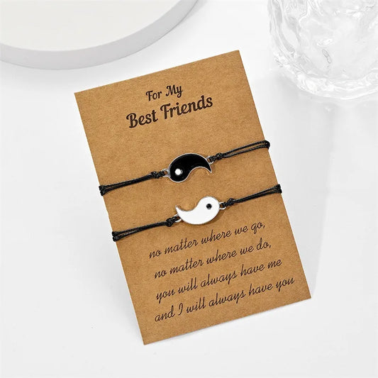 4 PCS/SET Stainless Steel Sisters Best Friends Charm String Bracelets Women Friendship Macrame Bracelet for Best Friend Sister