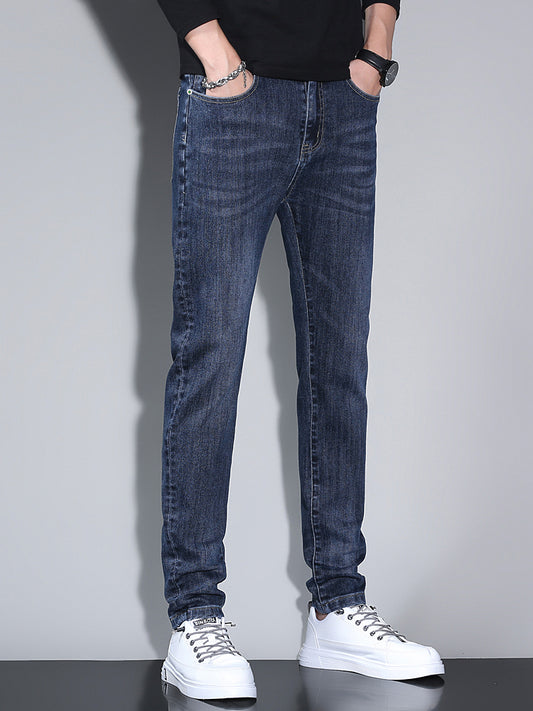 ANSZKTN Autumn and winter new men loose fashion casual trouser jeans small straight leg