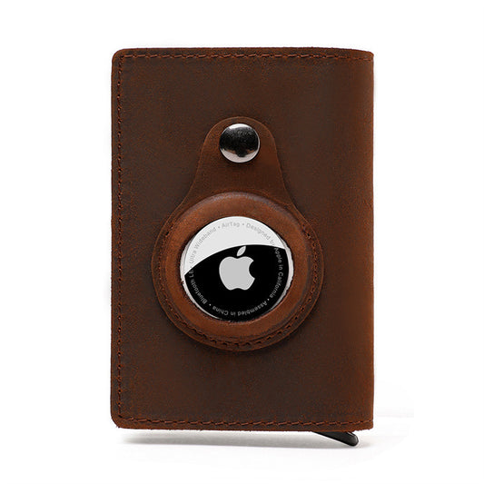 Drop Shipping Designer Genuine Leather ID Name Card Holder Aluminum Case RFID Minimalist Men Smart Slim Airtag Wallet