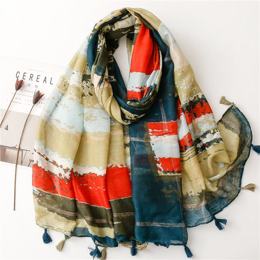 Low Easy Literature Tassel Polyester shawl hijab Plain Spot cotton hand feeling Yiwu