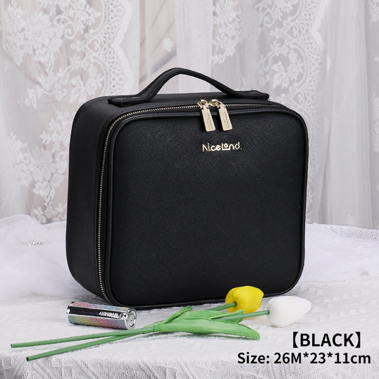 Custom logo large capacity desktop cosmetic bag storage box waterproof PU travel portable makeup bag case with LED light mirror