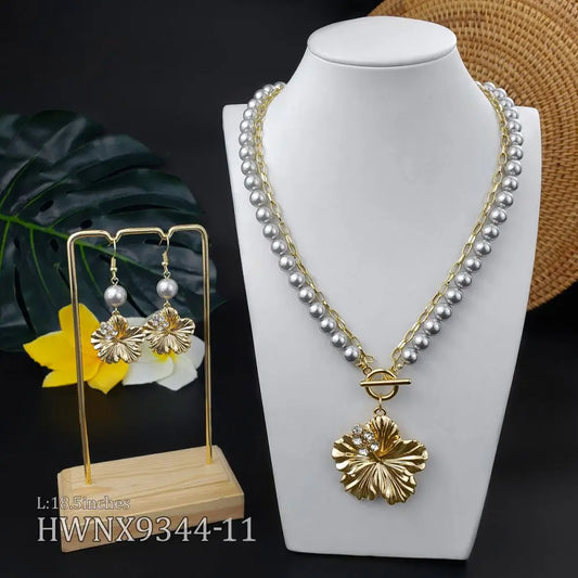 hawaiian jewelry sets 14k plated flower pendant necklace and earrings set for women girls